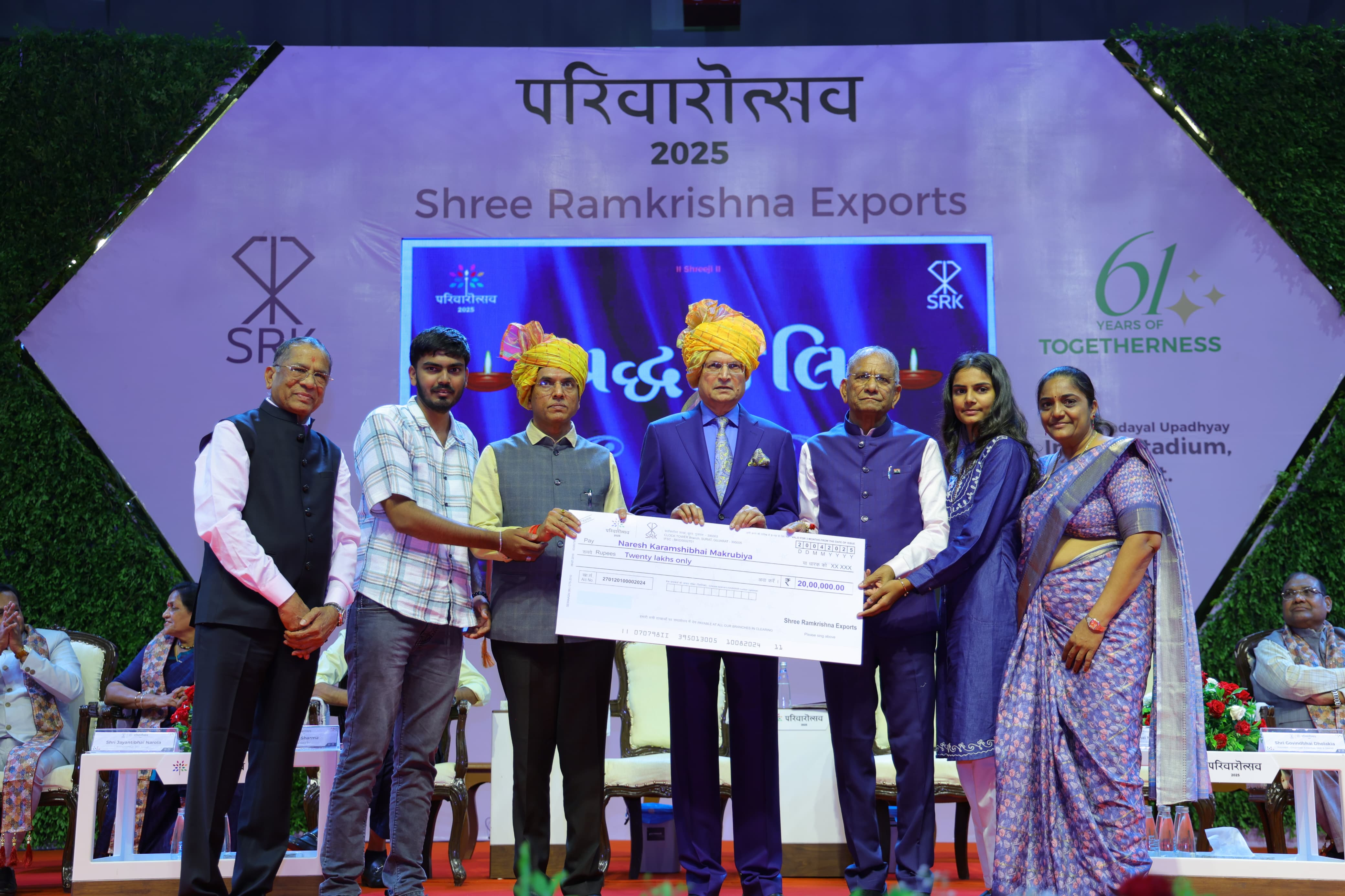 Speaking at the event, SRK Group Founder and Chairman Govindbhai Dholakia said, “Our growth has been guided by purity in purpose and lifestyle. In our organisation, no one is addicted or exploitative. This disciplined, simple way of working is what drives our continued success.”